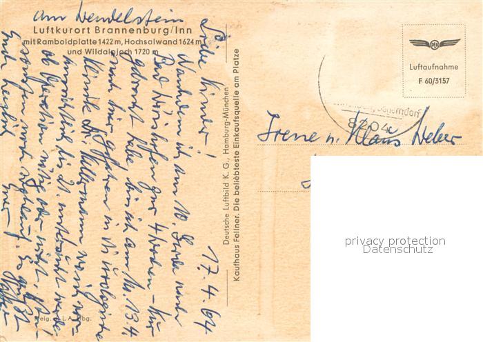 73683819 alte Postkarte Brannenburg Fliegeraufnahme mit Ramboldplatte Hochsalwand Wildalpjoch postalisch gelaufen Erhaltung siehe scans [LiesaD40] KatCode: 11110009187120
