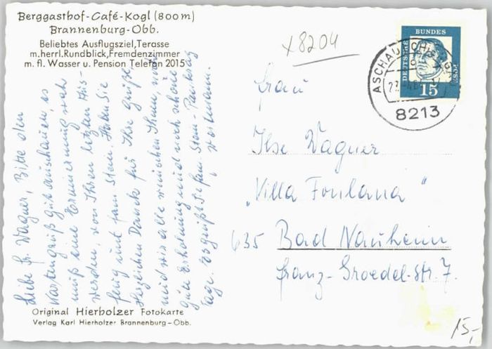 40208671 Brannenburg Gasthof Cafe Kogl x 1964 KatCode 11110009187120