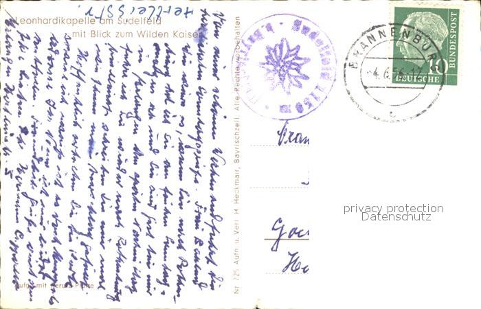 72090694 alte Postkarte Brannenburg Leonhardikapelle am Sudelfeld mit Blick zum Wilden Kaiser postalisch gelaufen Erhaltung siehe scans KatCode: 11110009187120