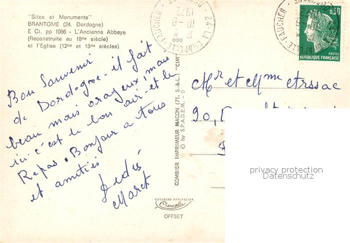 13589785 Brantome Ancienne Abbaye et l’Eglise postalisch gelaufen Erhaltung siehe scans [WerneD78] carte postale Wern Katcode 11170024324064