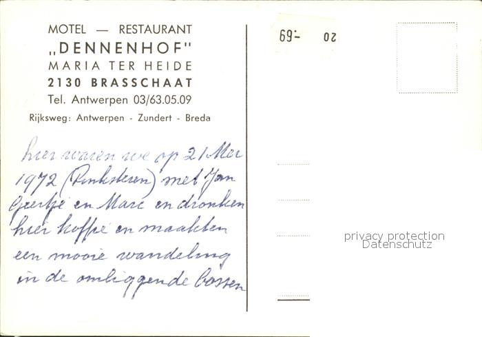 72071146 Brasschaat Motel Restaurant Dennenhof postalisch nicht gelaufen Erhaltung siehe scans KatCode: 11070011000075