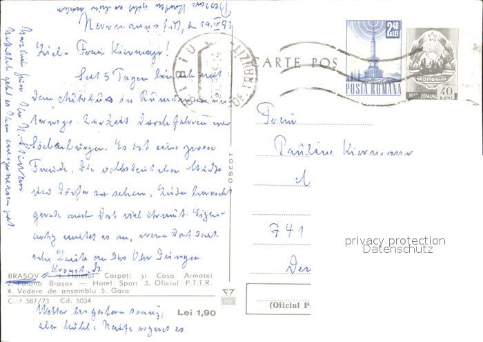 old postcard Brasso Brasov Kronstadt Hotel Sport Casa Armatei Bahnhof postalisch gelaufen Erhaltung siehe scans