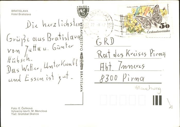 old postcard Bratislava Pressburg Pozsony Hotel Bratislava postalisch gelaufen Erhaltung siehe scans