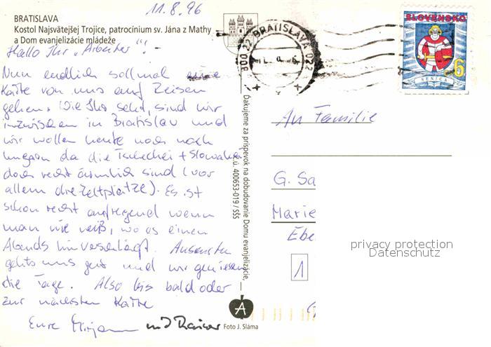 old postcard Bratislava Pressburg Pozsony Kostol Najsvaetejsej Trojice Blick ueber die Donau postalisch gelaufen Erhaltung siehe scans [FriedD77]