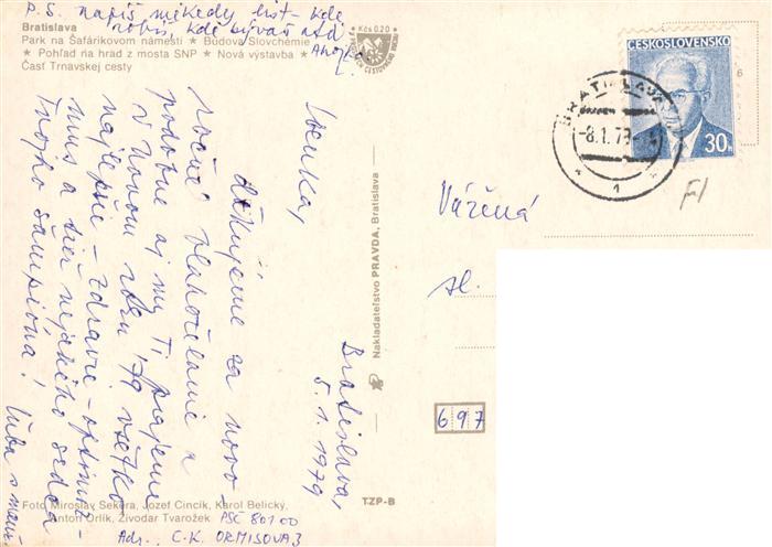old postcard Bratislava Pressburg Pozsony SK Park Denkmal Donaubruecke Hotel Panorama postalisch gelaufen Erhaltung siehe scans [FriedD77]