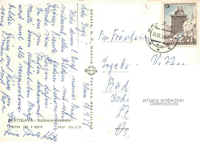 34144511 old postcard BRATISLAVA Pressburg Pozsony SK Stalinovo namestie postalisch gelaufen Erhaltung siehe scans [WerneD78] KatCode: 11490