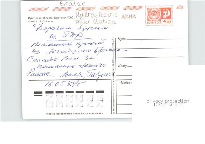 Bratsk Hydroelectric Power Station postalisch nicht gelaufen Erhaltung siehe scans [FriedD77]