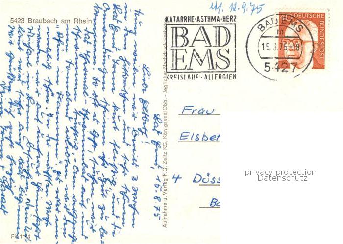 72972482 alte Postkarte Braubach Rhein Bauernschaenke Eck-Fritz postalisch gelaufen Erhaltung siehe scans [PaolaD17] KatCode: 11110007141501