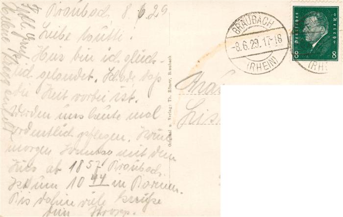 73948939 alte Postkarte Braubach Rhein Blick ueber den Rhein zur Marksburg Baumbluete postalisch gelaufen Erhaltung siehe scans [FriedD77] KatCode: 11110007141501