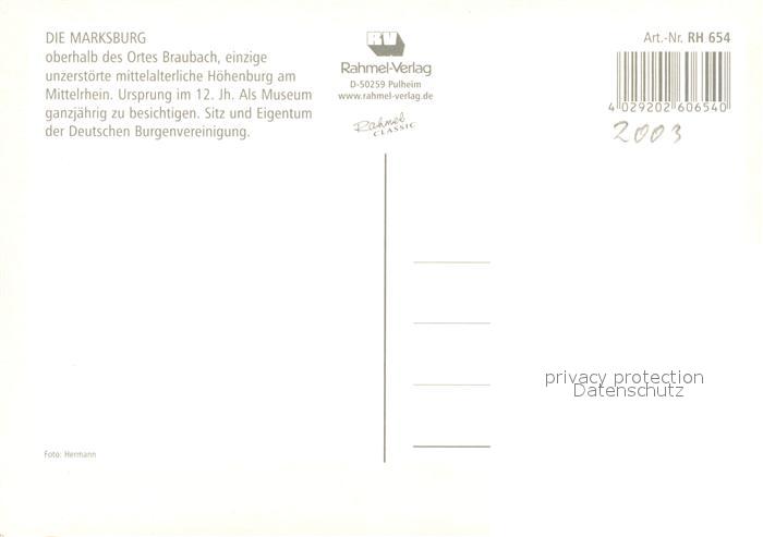 73063038 Braubach Rhein Die Marksburg postalisch nicht gelaufen Erhaltung siehe scans [FriedD77] KatCode: 11110007141501