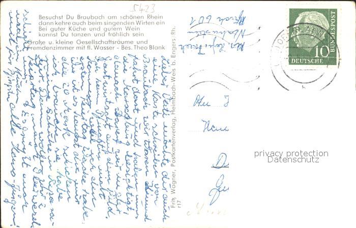 31884931 alte Postkarte Braubach Rhein Gasthof zum singenden Wirt postalisch gelaufen Erhaltung siehe scans KatCode: 11110007141501