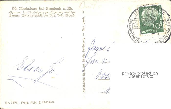 71874428 alte Postkarte Braubach Rhein Marksburg postalisch gelaufen Erhaltung siehe scans KatCode: 11110007141501