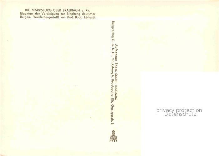 72752396 Braubach Rhein Marksburg postalisch nicht gelaufen Erhaltung siehe scans [AndreD76] KatCode: 11110007141501
