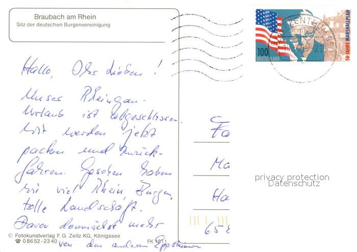 73105439 alte Postkarte Braubach Rhein Marksburg Kemenate Rittersaal Ritterruestungen Burgkueche postalisch gelaufen Erhaltung siehe scans [WerneD78] KatCode: 11110007141501