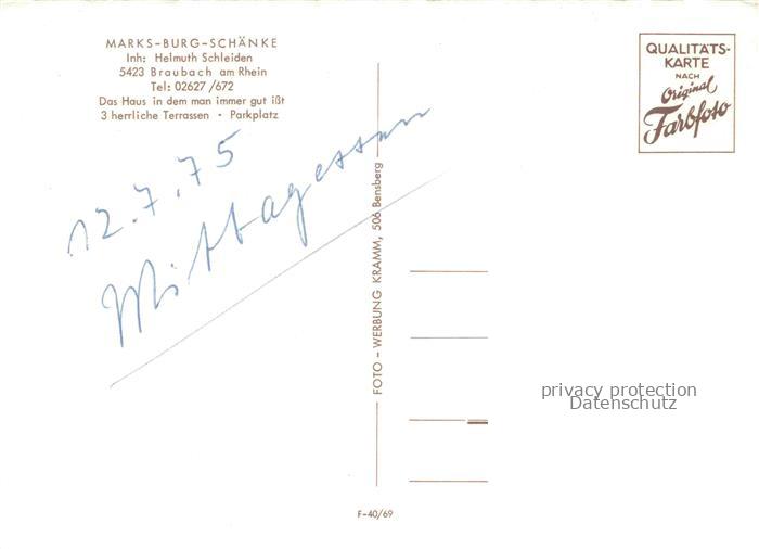 74050902 Braubach Rhein Marksburg Schaenke Gastraeume Grillstube Panorama postalisch nicht gelaufen Erhaltung siehe scans [WerneD78] KatCode: 11110007141501