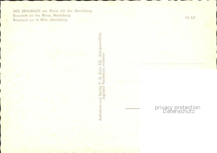 72297983 Braubach Rhein Teilansicht mit Marksburg postalisch nicht gelaufen Erhaltung siehe scans KatCode: 11110007141501
