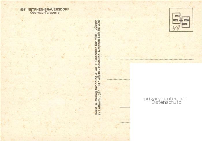 73322249 Brauersdorf Netphen Fliegeraufnahme Obernau Talsperre postalisch nicht gelaufen Erhaltung siehe scans [KathaD81] KatCode: 11110005970032