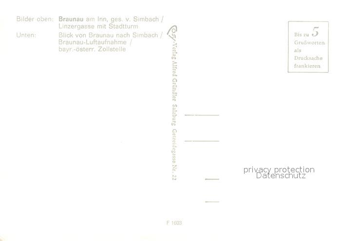 73356839 Braunau Inn Blick ueber den Inn von Simbach aus Linzergasse Stadtturm Bruecke Braunau Simbach bayrisch oesterreichische Zollstelle postalisch nicht gelaufen Erhaltung siehe scans [FriedD77] KatCode: 11390311040404