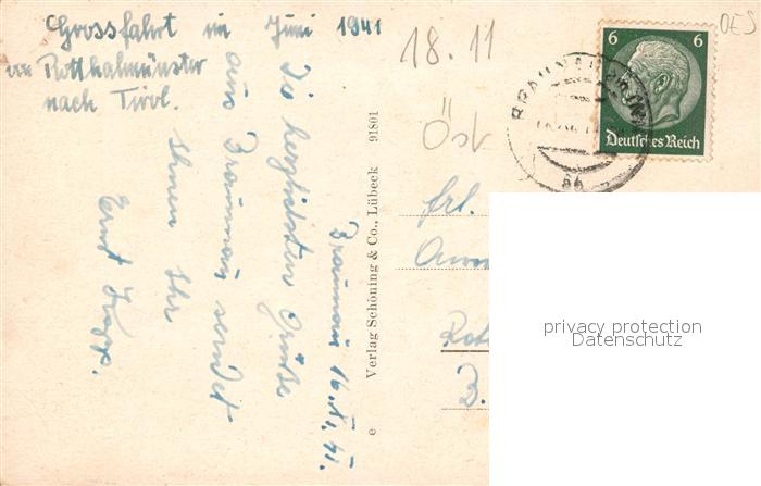 43109644 alte Postkarte Braunau Inn Blick ueber den Inn zur Stadt postalisch gelaufen Erhaltung siehe scans [FriedD77] KatCode: 11390311040404