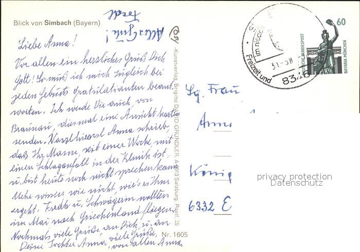 72498722 alte Postkarte Braunau Inn Blick von Simbach postalisch gelaufen Erhaltung siehe scans KatCode: 11390311040404