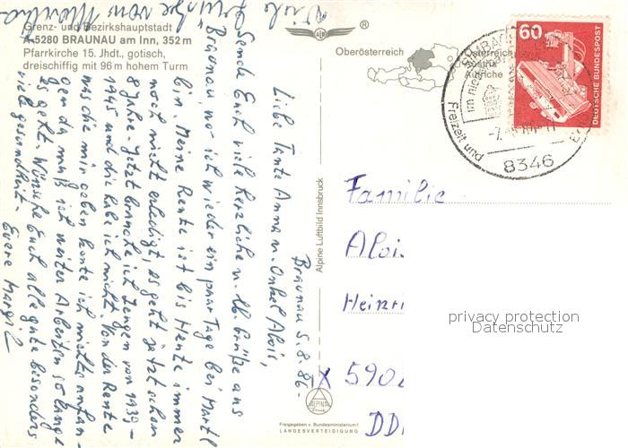 73645275 alte Postkarte Braunau Inn Grenz- und Bezirkshauptstadt Fliegeraufnahme postalisch gelaufen Erhaltung siehe scans [FriedD77] KatCode: 11390311040404