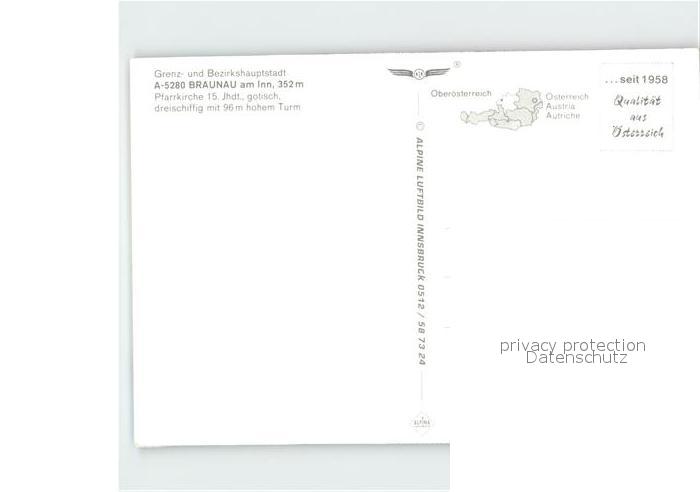 72077819 Braunau Inn Oberoesterreich Fliegeraufnahme Pfarrkirche Brunnen Teilansichten postalisch nicht gelaufen Erhaltung siehe scans KatCode: 11390311040404