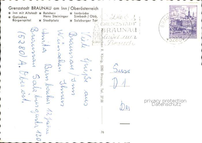 72238246 alte Postkarte Braunau Inn Oberoesterreich Ratsherr Hans Steiniger Gotisches Buergerspital Salzburger Tor postalisch gelaufen Erhaltung siehe scans KatCode: 11390311040404