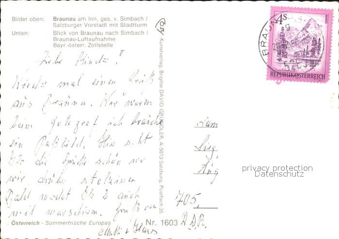 72436399 alte Postkarte Braunau Inn Vorstadtmit Stadtturm Blick nach Simbach Luftaufnahme postalisch gelaufen Erhaltung siehe scans KatCode: 11390311040404