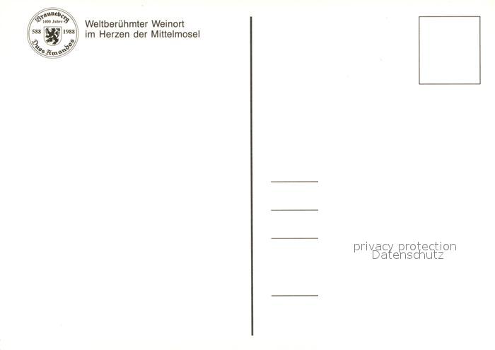 73176013 Brauneberg Weinort an der Mosel Kirchturm Weinreben Weinglaeser postalisch nicht gelaufen Erhaltung siehe scans [FriedD77] KatCode: 11110007231012