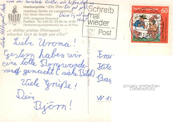 73091845 alte Postkarte Brauneck-Gipfelhaus Idealhanghuette Stiealm postalisch gelaufen Erhaltung siehe scans [KathaD81] KatCode: 11110009173135
