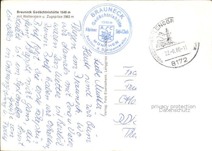 72076721 alte Postkarte Brauneck-Gipfelhaus Wetterstein Zugspitze postalisch gelaufen Erhaltung siehe scans KatCode: 11110009173135
