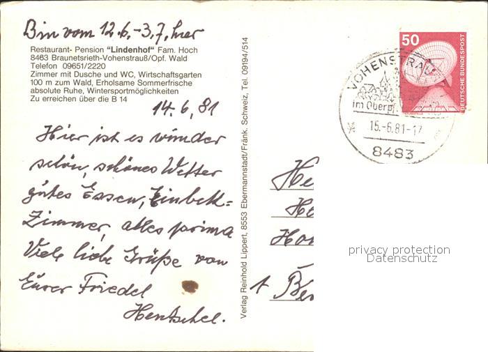 72109600 alte Postkarte Braunetsrieth Gasthaus Pension Lindenhof postalisch gelaufen Erhaltung siehe scans KatCode: 11110009374162