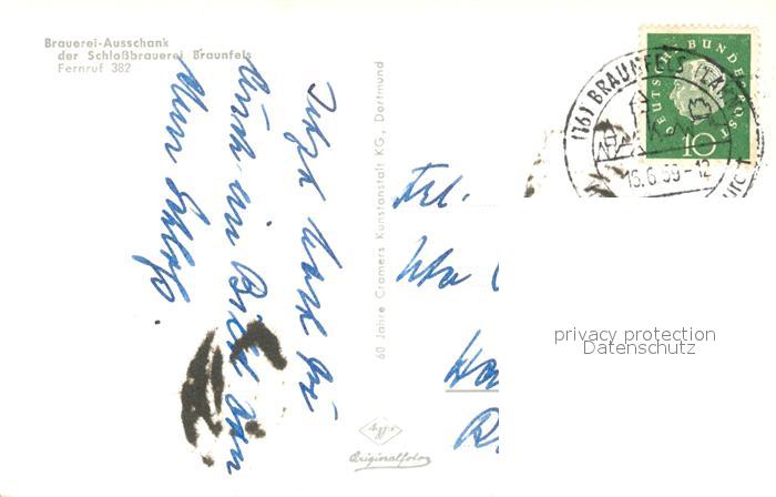 73146099 alte Postkarte Braunfels Brauerei-Ausschank postalisch gelaufen Erhaltung siehe scans [NatalD47] KatCode: 11110006532003
