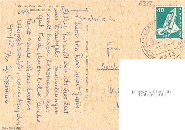 72901998 alte Postkarte Braunfels Erholungsheim der Hirnverletzten postalisch gelaufen Erhaltung siehe scans [WerneD78] KatCode: 11110006532003