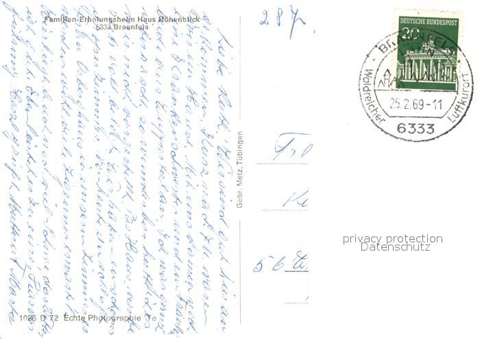73099272 alte Postkarte Braunfels Familienerholungsheim Haus Hoehenblick postalisch gelaufen Erhaltung siehe scans [KathaD81] KatCode: 11110006532003