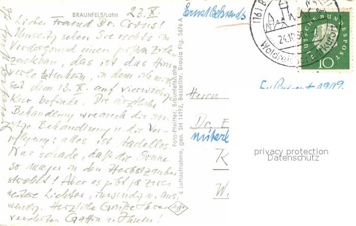 72891336 alte Postkarte Braunfels Fliegeraufnahme postalisch gelaufen Erhaltung siehe scans [PaolaD17] KatCode: 11110006532003