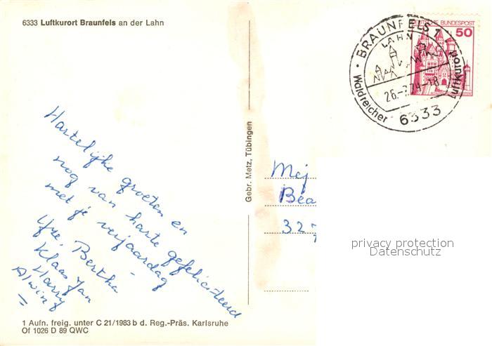 73314579 alte Postkarte Braunfels Fliegeraufnahme Freibad Segelflug postalisch gelaufen Erhaltung siehe scans [LiesaD40] KatCode: 11110006532003