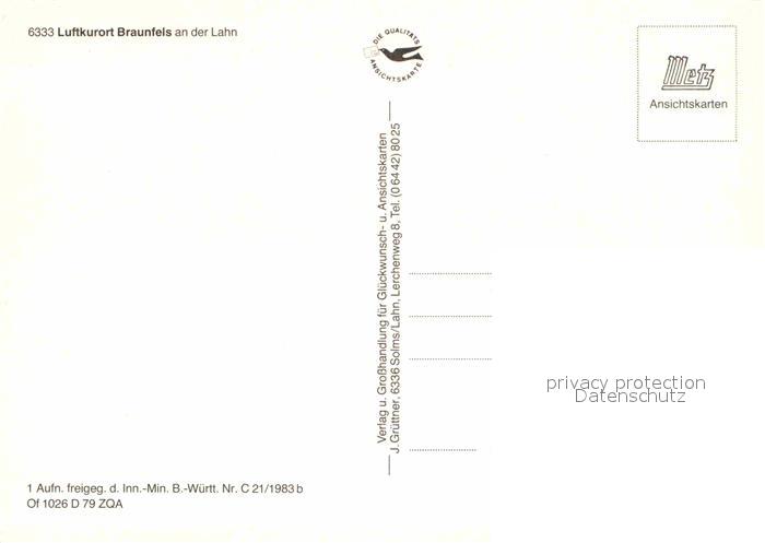 72769922 Braunfels Fliegeraufnahme Schloss Fachwerkhaeuser Untere Pforte Teilansicht postalisch nicht gelaufen Erhaltung siehe scans [AndreD76] KatCode: 11110006532003