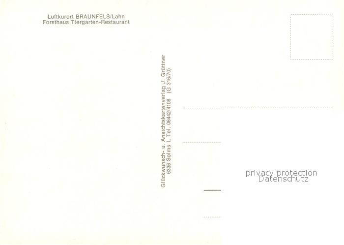 73154529 Braunfels Forsthaus Tiergarten Restaurant Wild postalisch nicht gelaufen Erhaltung siehe scans [LiesaD40] KatCode: 11110006532003