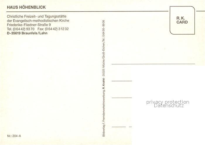 73543103 Braunfels Freizeit- und Tagungsstaette Haus Hoehenblick postalisch nicht gelaufen Erhaltung siehe scans [FriedD77] KatCode: 11110006532003