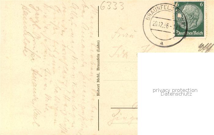 73706247 alte Postkarte Braunfels Haus Diehl Aussenansicht postalisch gelaufen Erhaltung siehe scans [LiesaD40] KatCode: 11110006532003