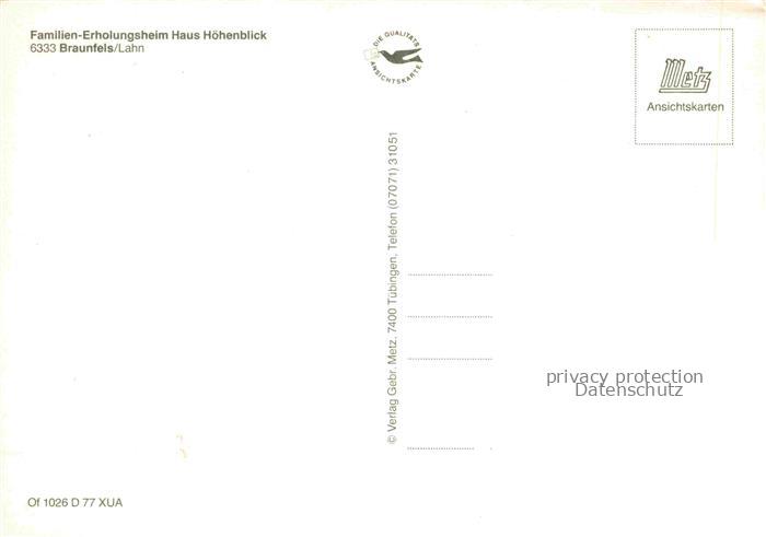 74037702 Braunfels Haus Hoehenblick Familien-Erholungsheim postalisch nicht gelaufen Erhaltung siehe scans [FriedD77] KatCode: 11110006532003