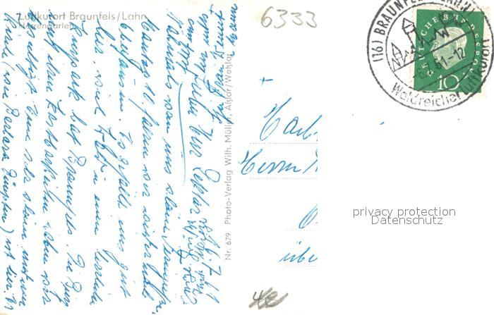 73698876 alte Postkarte Braunfels Herrengarten postalisch gelaufen Erhaltung siehe scans [LiesaD40] KatCode: 11110006532003