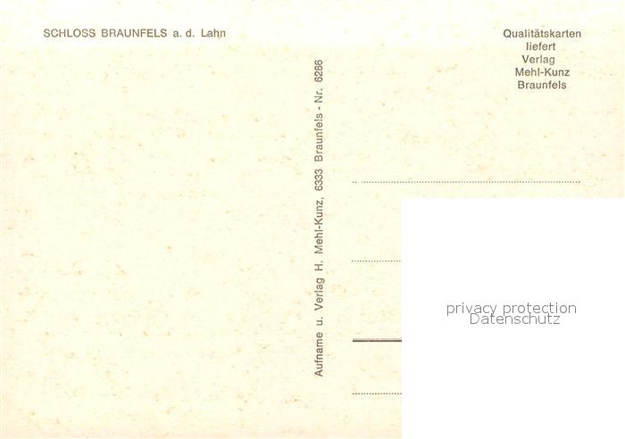 73154547 Braunfels mit Schloss postalisch nicht gelaufen Erhaltung siehe scans [LiesaD40] KatCode: 11110006532003