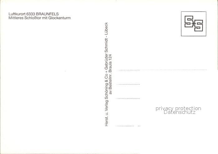 72439711 Braunfels Mittleres Schlosstor mit Glockenturm Luftkurort Fachwerkhaus postalisch nicht gelaufen Erhaltung siehe scans KatCode: 11110006532003