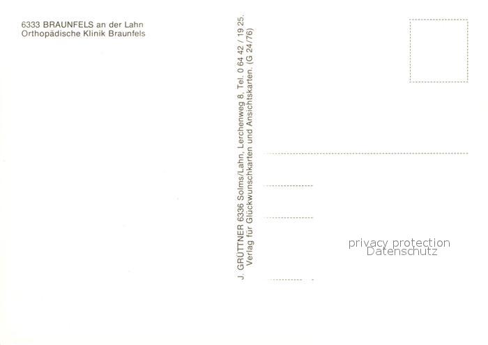 73015175 Braunfels Orthopaedische Klinik Braunfels postalisch nicht gelaufen Erhaltung siehe scans [NatalD47] KatCode: 11110006532003
