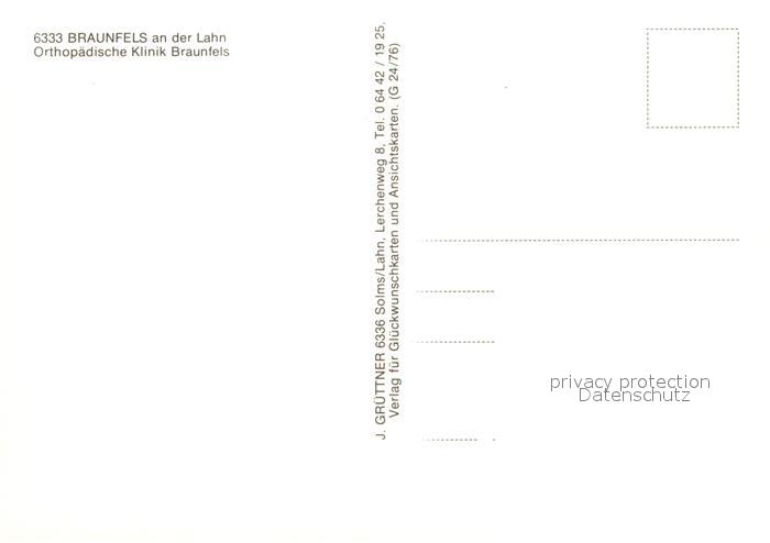 73021176 Braunfels Orthopaedische Klinik Braunfels postalisch nicht gelaufen Erhaltung siehe scans [PaolaD17] KatCode: 11110006532003