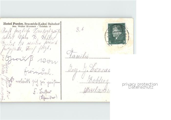 72217075 alte Postkarte Braunfels Schloss postalisch gelaufen Erhaltung siehe scans KatCode: 11110006532003