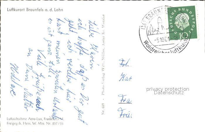 72098606 alte Postkarte Braunfels Schloss postalisch gelaufen Erhaltung siehe scans KatCode: 11110006532003