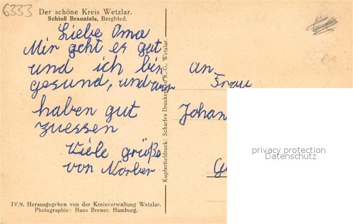 73692750 Braunfels Schloss Bergfried postalisch nicht gelaufen Erhaltung siehe scans [FriedD77] KatCode: 11110006532003
